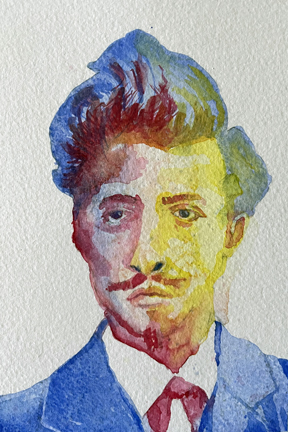 Portrait of Piet Mondrian in Red, Blue, and Yellow, 4″ x 6″